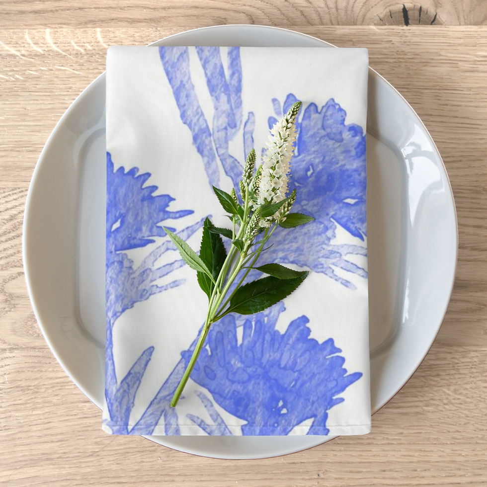 I created "Thistle While You Work" to show how even something like weeds can be beautiful. I loved the blue variation of the design. It has a calming effect and looks great in a classy dining setting.